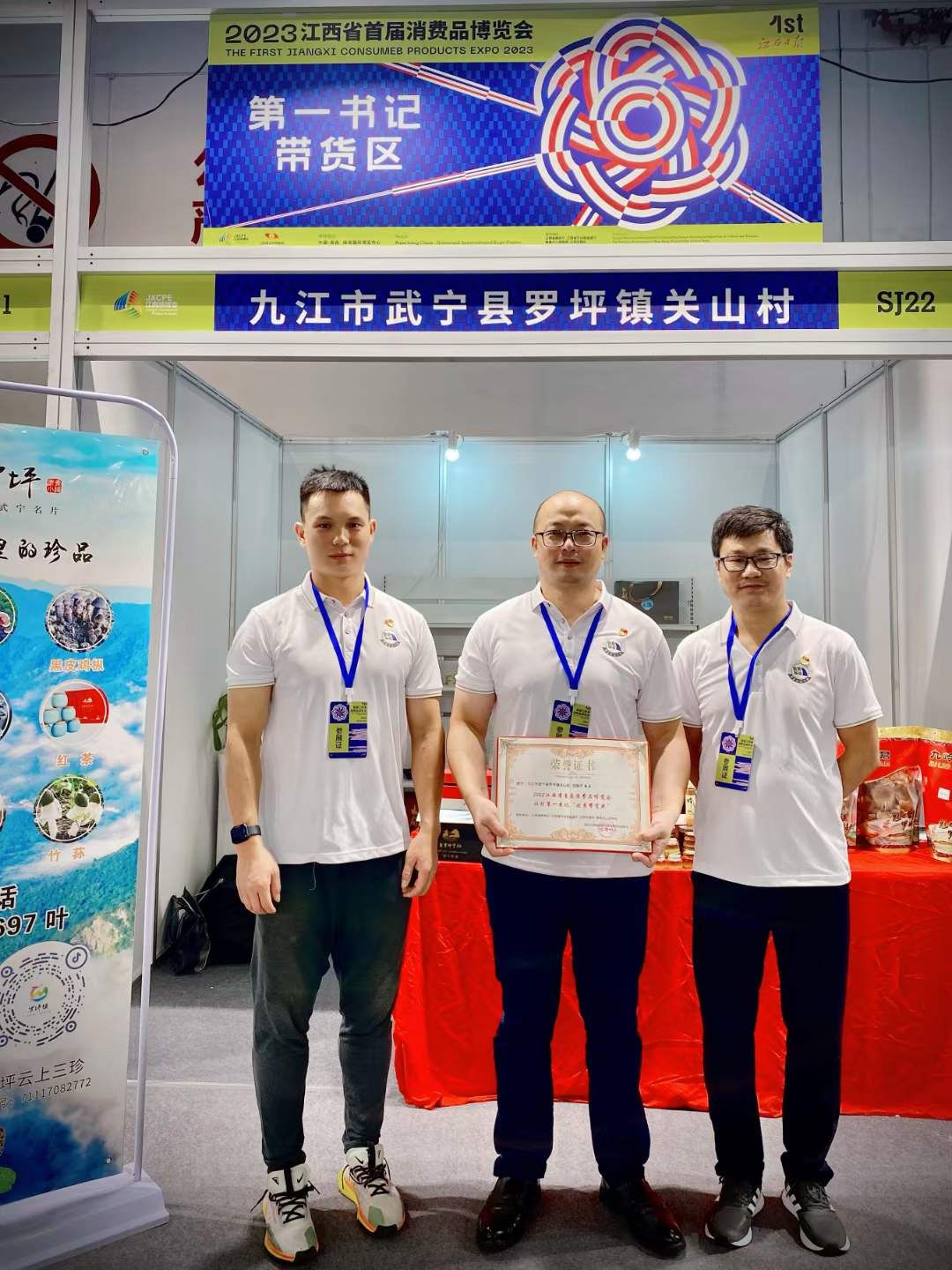 寻赣地精品,购江西好物。9月24日,为期三天的2023江西省首届消费品博览会(简称“消博会”)在南昌落幕。开元驻武宁县罗坪镇关山村工作队携带关山村及武宁县其他村的农特产品二十余种,亮相消博会,并荣获2023江西省首届消费品博览会驻村第一书记“优秀带货奖”。