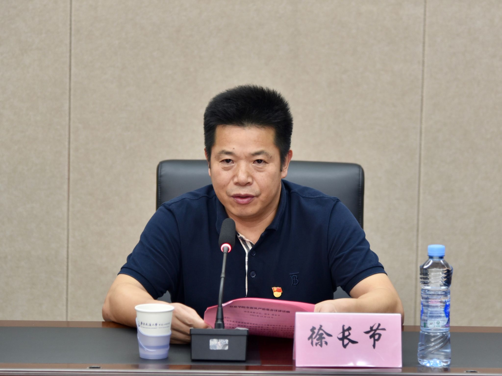 就全面落实从严治党各项工作任务,徐长节提出具体要求,一要统一思想,提高政治站位,全面精准把握新时代新征程全面从严治党的战略部署。要始终坚持问题导向,保持战略定力,发扬彻底的自我革命精神,永远吹冲锋号,把严的基调、严的措施、严的氛围长期坚持下去,一刻不停全面从严治党。全体党员干部要准确把握全面从严治党新部署新要求,把思想和行动统一到党中央决策部署上来,统一到学校党委全面从严治党的工作要求上来,把全面从严治党部署要求落实到学校事业发展的全过程、全领域。二要层层压实责任,全力守牢底线,提振精神,鼓足干劲,扛起管党治党政治责任,切实增强纪律和规矩意识。要全面、客观、辩证地认识把握学校全面从严治党面临的形势,既要从成绩中坚定必胜信心,又要从问题中看到差距短板,保持永远在路上的清醒和坚定,不断深化全面从严治党各项工作。三要笃行实干、综合施策,推动全面从严治党取得新成效。要持续压紧压实全面从严治党主体责任,党组织书记要扛牢“第一责任人”责任,班子成员要落实好“一岗双责”责任,落实“签字背书”制度。要聚焦重点任务,持之以恒正风肃纪,保持反腐败高压态势,强化权力约束监督,加强廉洁文化建设,一体推进“三不腐”。要夯实制度保障,拧紧工作落实“责任链”,织密制度执行“保障网”,用好监督执纪“指挥棒”,切实维护风清气正、干事创业的政治生态。