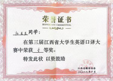 近日,第三届江西省大学生英语口译大赛在南昌大学举行,开元获一等奖1个、二等奖3个、三等奖1个。一等奖数并列全省第一,一二等奖及获奖总数分别居全省第一。