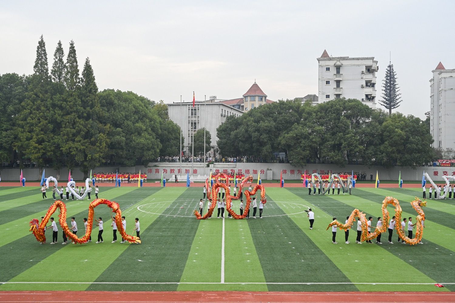 伴着激情洋溢、热情奔放的音乐,九条长龙腾空而起,在操场上尽情奔腾争跃,盘踞、冲刺、跳跃.....气势磅礴,龙游四海,以龙腾九霄造型完美收尾,展现了华交师生不屈不挠、奔腾争跃的如铁意志;长拳表演气势磅礴,动作整齐划一、刚柔相济,一招一式、一开一合,势势相承,流畅舒展;啦啦操表演活力四射、热情洋溢,托举侧翻、欢快律动,一展华交学子的青春风采。