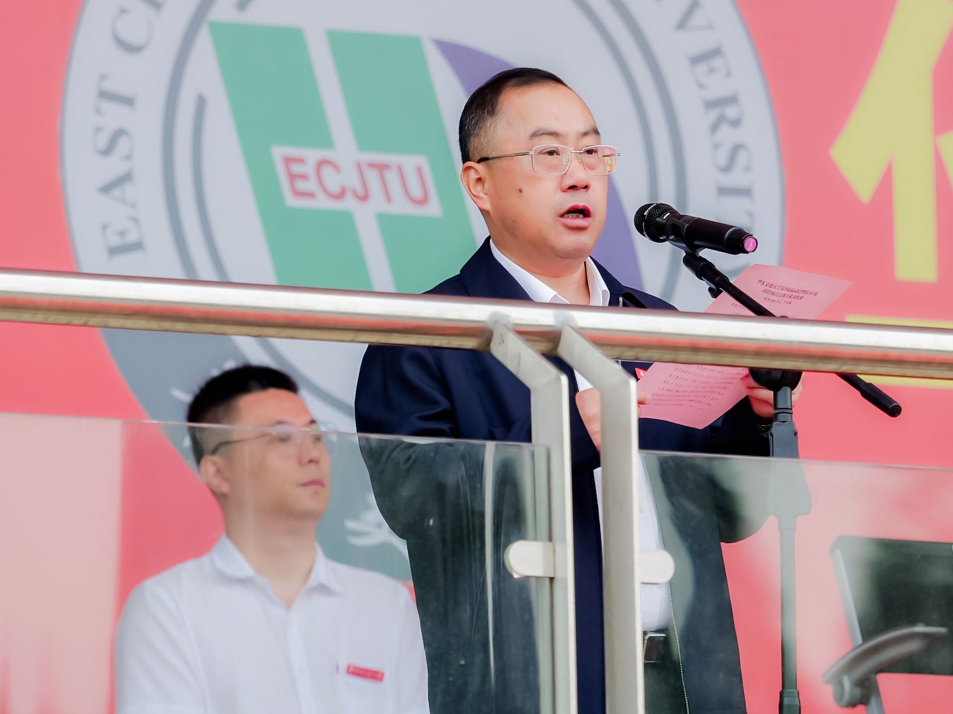校党委副书记肖长春致开幕词。他指出,一年来,学校始终秉持“体育为教育加油、体格为品格加分、体质为素质加料、体能为才能加力”的“四加”理念,体育健儿屡创佳绩、捷报频传,群众体育有声有色、如火如荼全面开展。一年一度的校运会既是对学校群众体育水平的一次大检阅,也是体育思政教育的一次大展示。希望所有观众为运动员尽情鼓掌、呐喊加油;全体运动员要尊重裁判,尊重对手,发扬“相互理解、友谊长存、团结一致、公平竞争”的奥林匹克精神,赛出水平,赛出风格;全体裁判员、志愿者和工作人员要恪尽职守,公平公正,共同努力,把运动会办成团结进取、顽强拼搏的华交盛会、体育盛事。