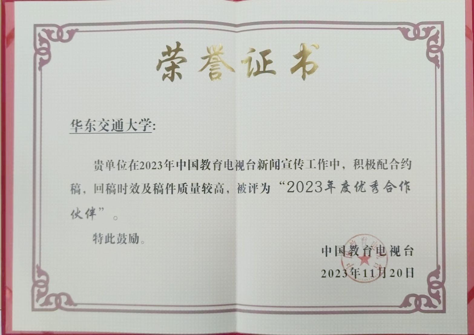 2023年,学校深入学习宣传贯彻习近平新时代中国特色社会主义思想,新闻宣传工作聚焦重大主题主线,抓住关键节点提升质效,着力讲好华交故事,传播华交声音,展现华交形象,全年在中国教育电视台《全国教育新闻联播》栏目刊播稿件21条,其中,《朗朗书声诵经典 最是书香能致远》被评为中国教育电视台2023年度好新闻,《红色走读学思想 掀起主题教育新热潮》播出时长超2分钟,为学校高质量发展营造了良好舆论氛围。