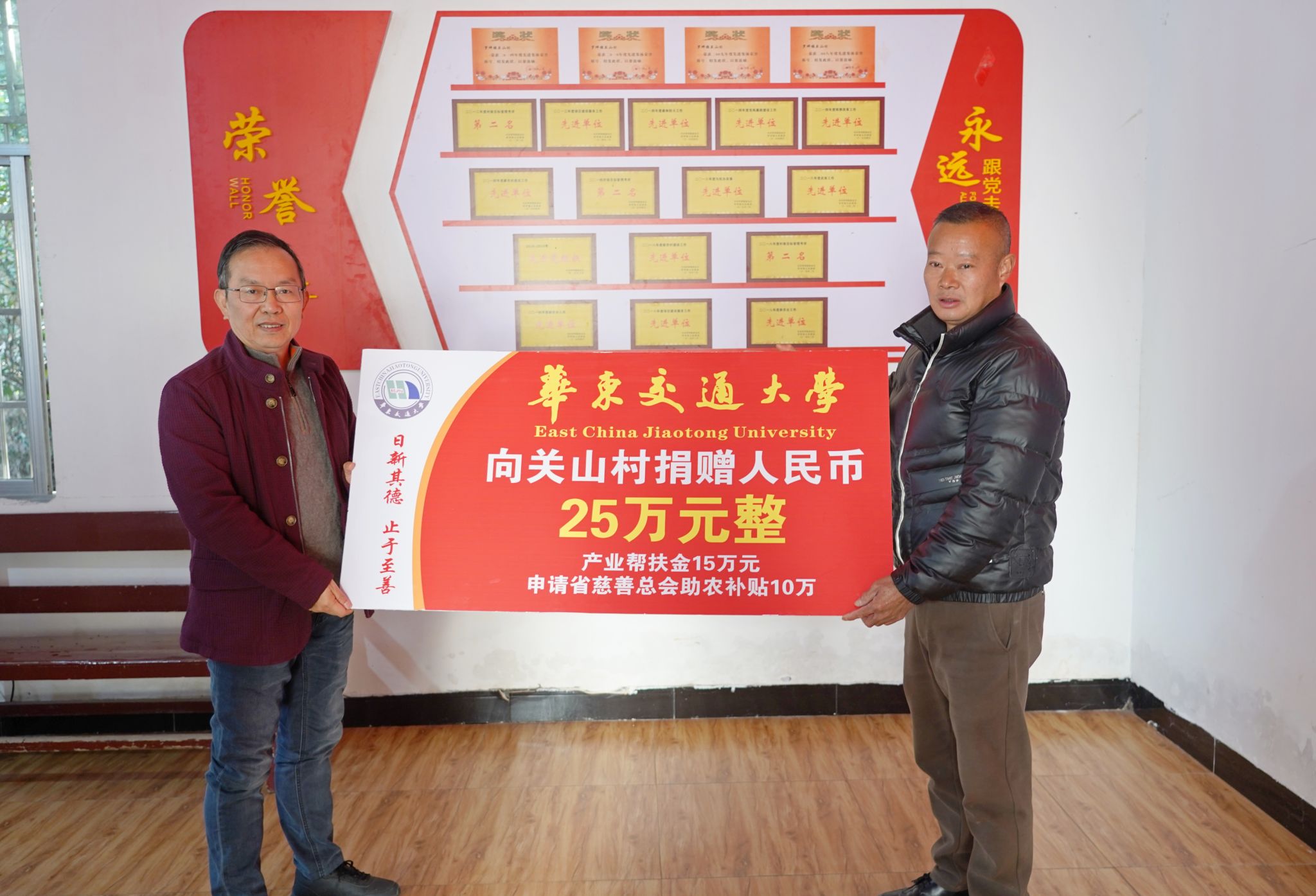 校党委书记柳和生代表学校党委向关山村捐赠帮扶金。