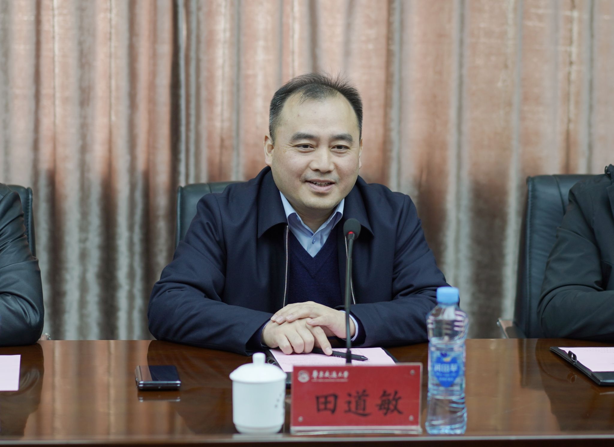 柳和生对田道敏一行的来访表示欢迎并简要介绍了学校校情。他指出,华东交大生来就姓铁,历来有铁性,服务交通强国和交通强省是学校的本性和使命。华东交大和郑州铁路职业技术学院同属行业内院校,是同行更是“铁兄弟”。希望双方互为铁杆,一路同行,相互支持,在各个层面开展深入合作,实现共赢发展。