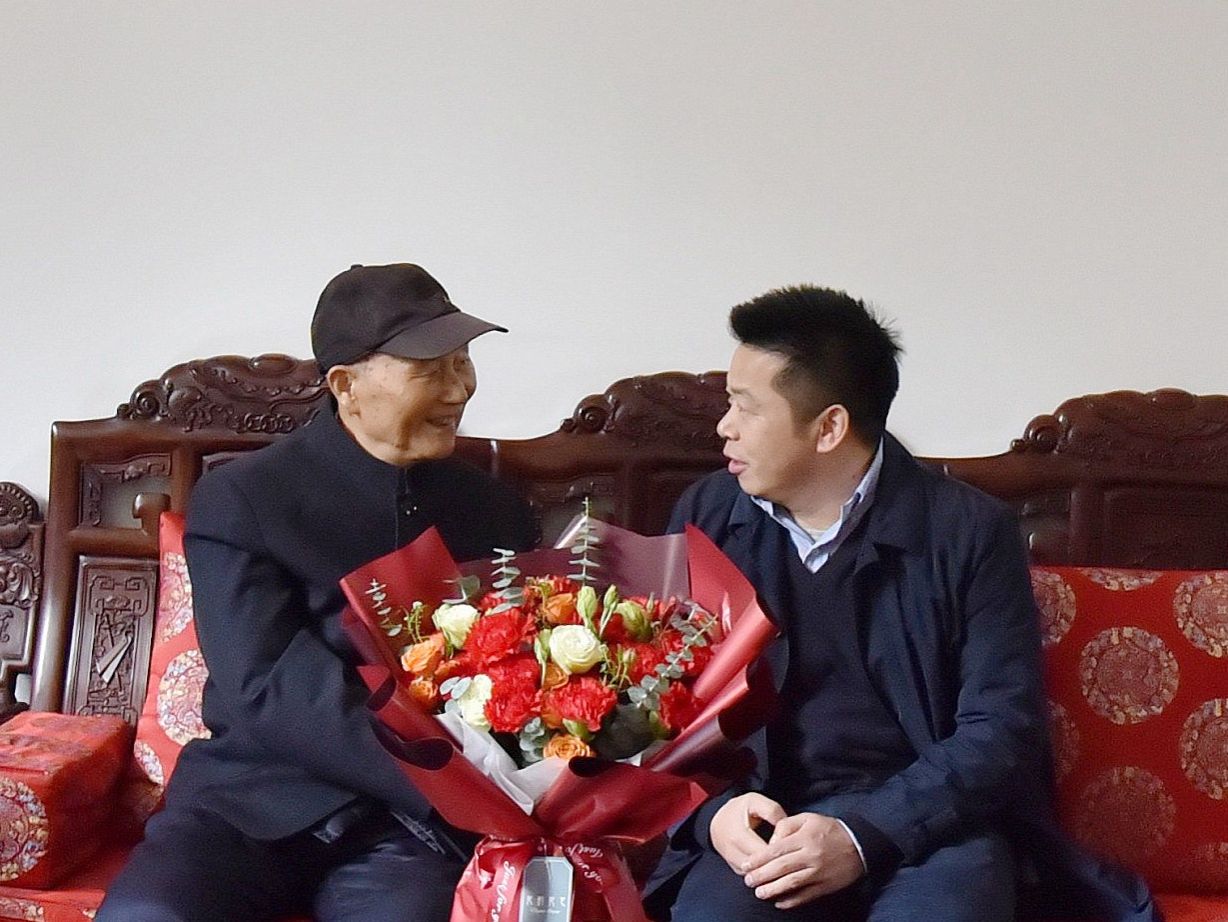 校党委书记柳和生走访慰问离休老同志杨曙。