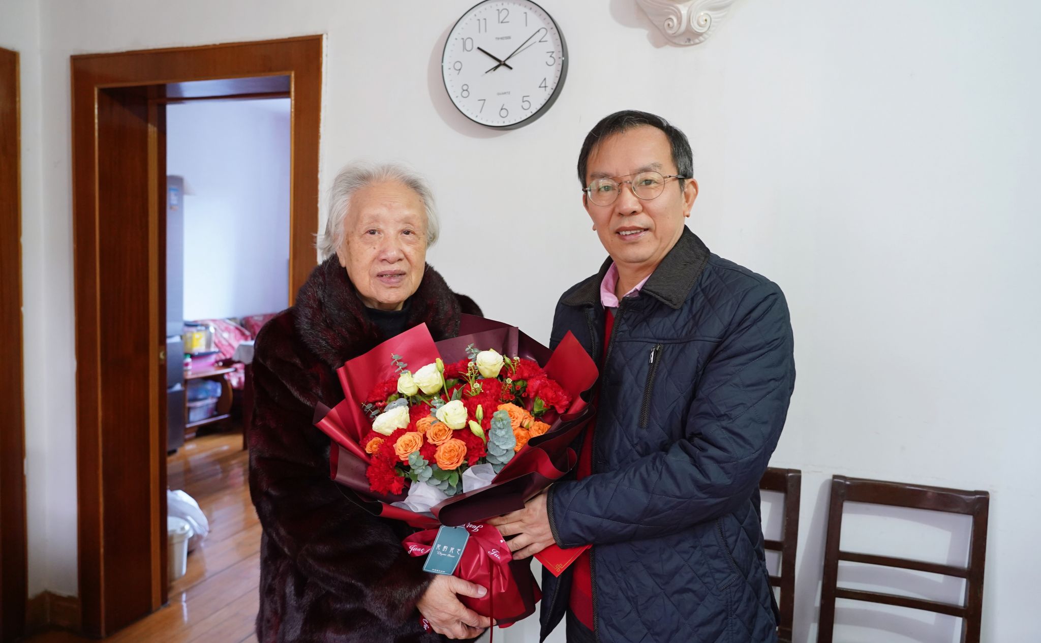 随后,柳和生来到离休老同志杨曙的家中看望。柳和生与老同志亲切交谈,嘘寒问暖,详细询问她的身体和生活情况。他说,老前辈们用奋斗和担当书写了学校辉煌的发展历史,为华交的发展做出了卓越的贡献,值得我们学习和铭记。杨曙代表离退休老同志感谢学校对老同志的关心,并祝愿学校越办越好。