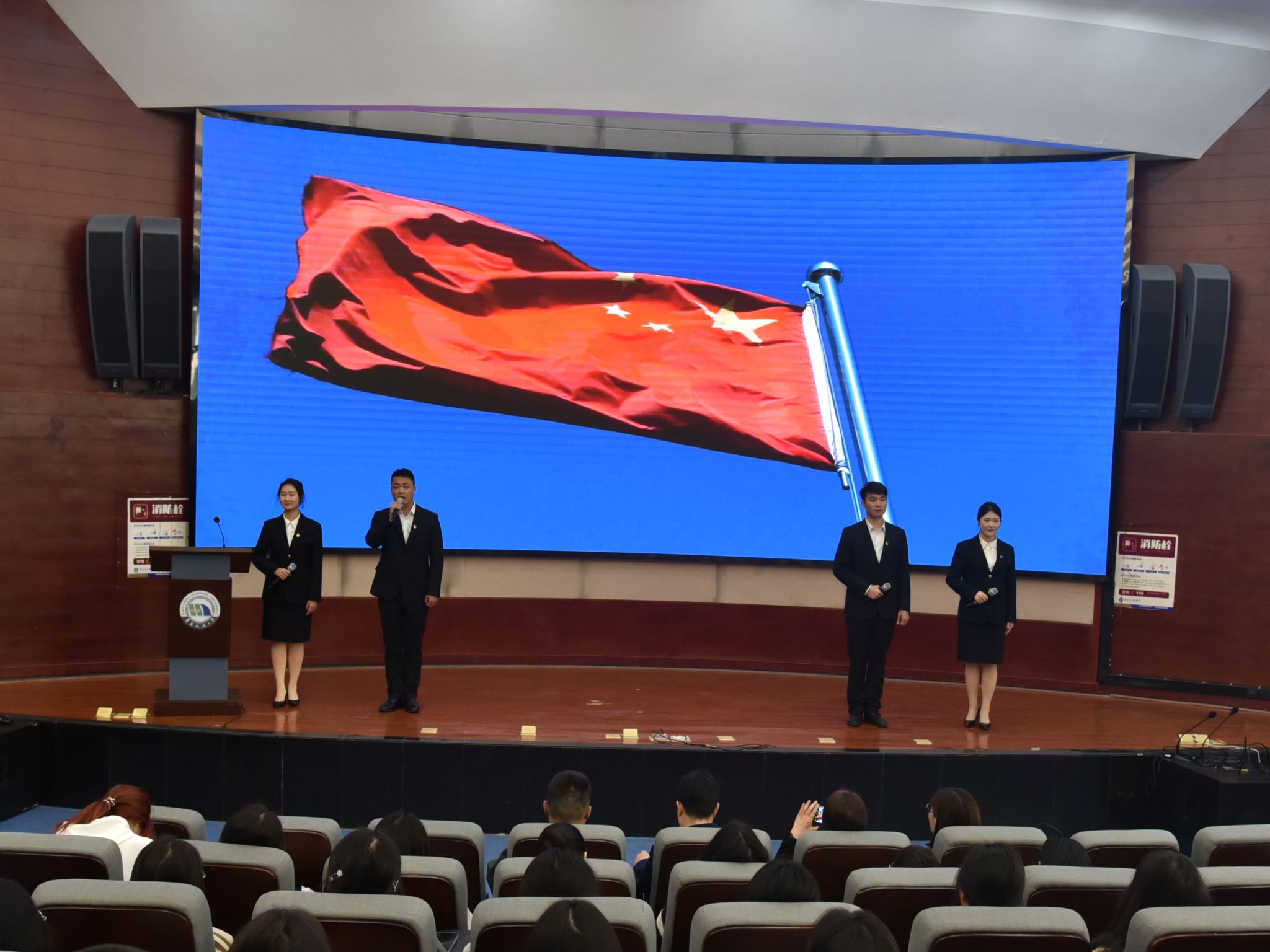 “朋友,我相信,到那时,到处都是活跃跃的创造,到处都是日新月异的进步……”宣讲会结束前,全体人员起立共同诵读《可爱的中国》(节选),慷慨激昂的齐声朗读将宣讲会氛围推向高潮。