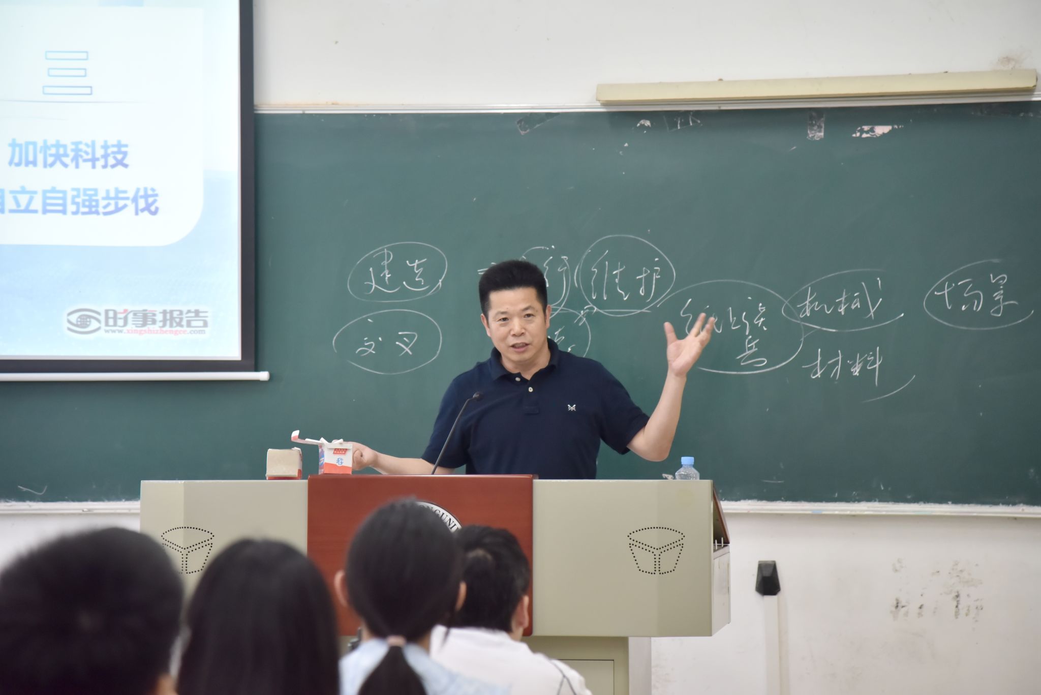 课堂上,徐长节从新时代的特点开讲,用古代、近代到现代科技进步的具体事例分析了科技创新的重要性。他指出,科学技术的进步给人类的生产方式和生活方式带来了巨大的变革,并将持续改变人类生活的方方面面,这使得我们必须要跟上现代科学技术发展的步伐,否则就会被时代淘汰。同时,他也强调,虽然科学技术发展迅速,但基础学科仍然是科技自立自强的基石。新时代科技自立自强必须加强基础研究,加快推进学科交叉融合,以创新驱动发展。
