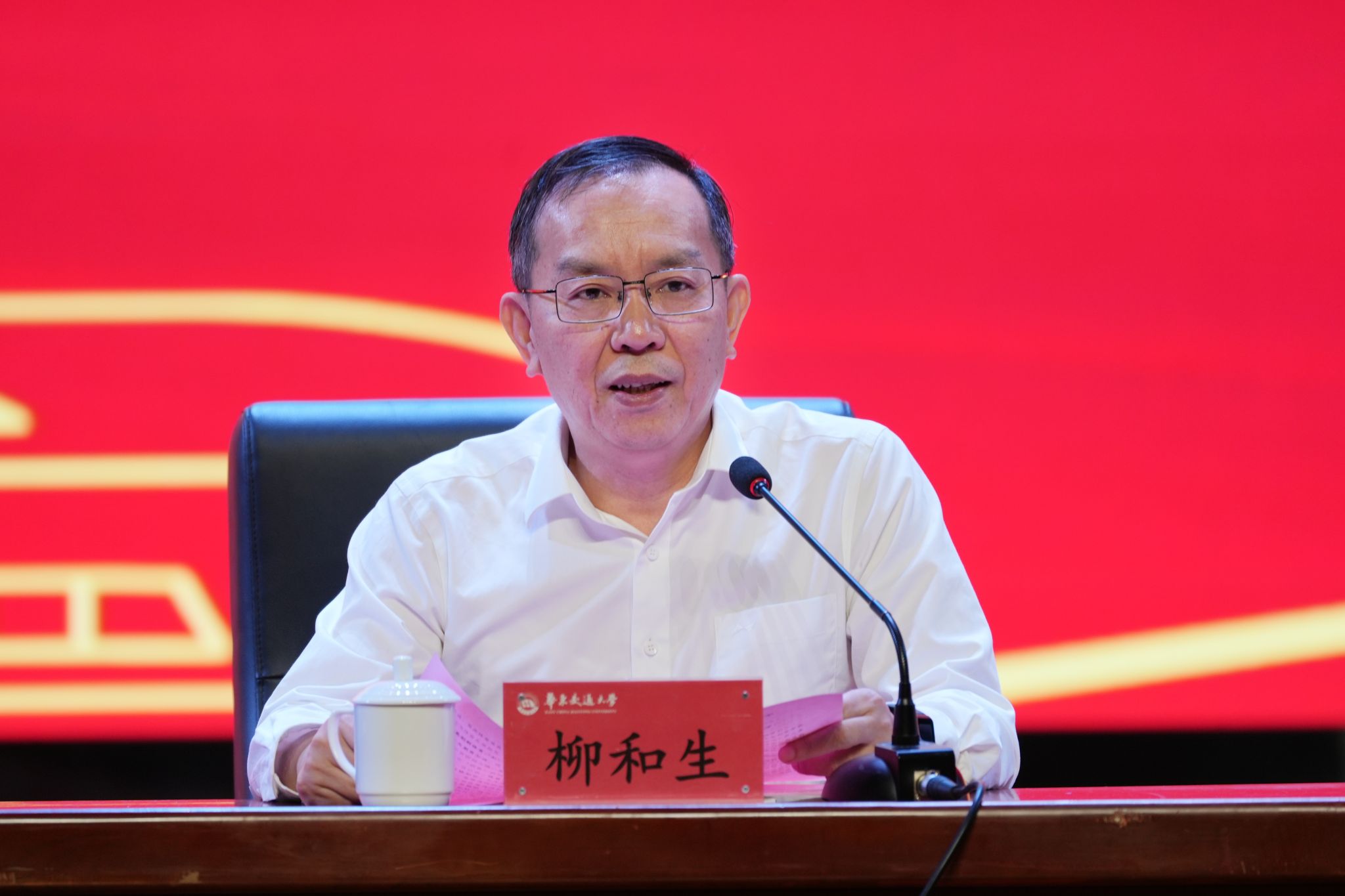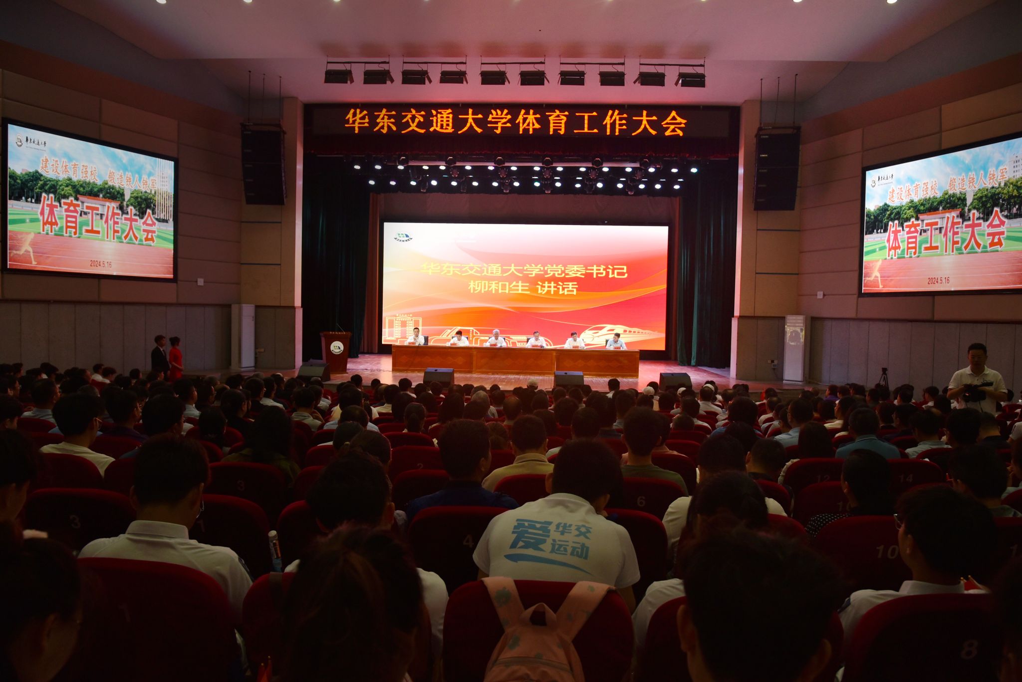 柳和生以“建设体育强校 锻造铁人铁军”为题作主旨讲话。他指出,首次召开全校性的体育工作大会,就是要回头看前情何如,抬头望如何前行,不断开创学校体育事业高质量发展新局面。回头看,佳作频频出——交大体育已然交出了“大好作品”。体育教育有声有色、竞技体育出新出彩、群众体育如火如荼。抬头望,繁花朵朵开——交大体育依然要浇开“大美花朵”。要刷新体育佳绩,发展体育强校,群众体育更广泛,竞技体育更有范,公共体育再发力,专业体育再发展。要创新体育“加”法,发挥体育强效,体育为教育加油,体育是教育的“加油站”;体格为品格加分,体格是品格的“加分项”;体质为素质加料,体质是素质的“加料包”;体能为才能加力,体能是才能的“加力杆”。要锻炼铁筋铁骨铁体质,要镕造铁心铁血铁意志。