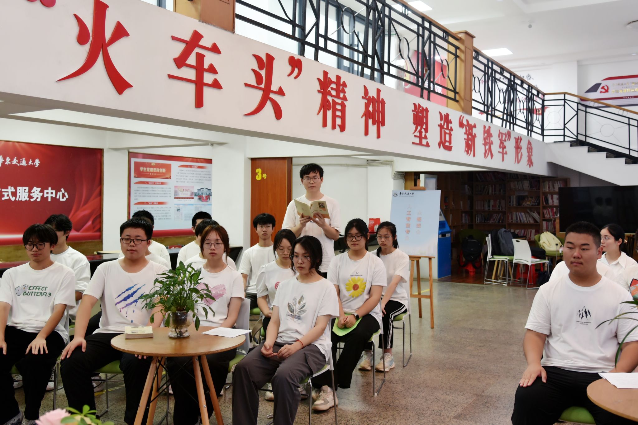 同学们围绕书籍、个人实践经历,畅所欲言,分享了自己对“青年”的看法。在深情的诗歌朗诵《新时代青年》中,同学们用自己的方式诠释“青年何为。”