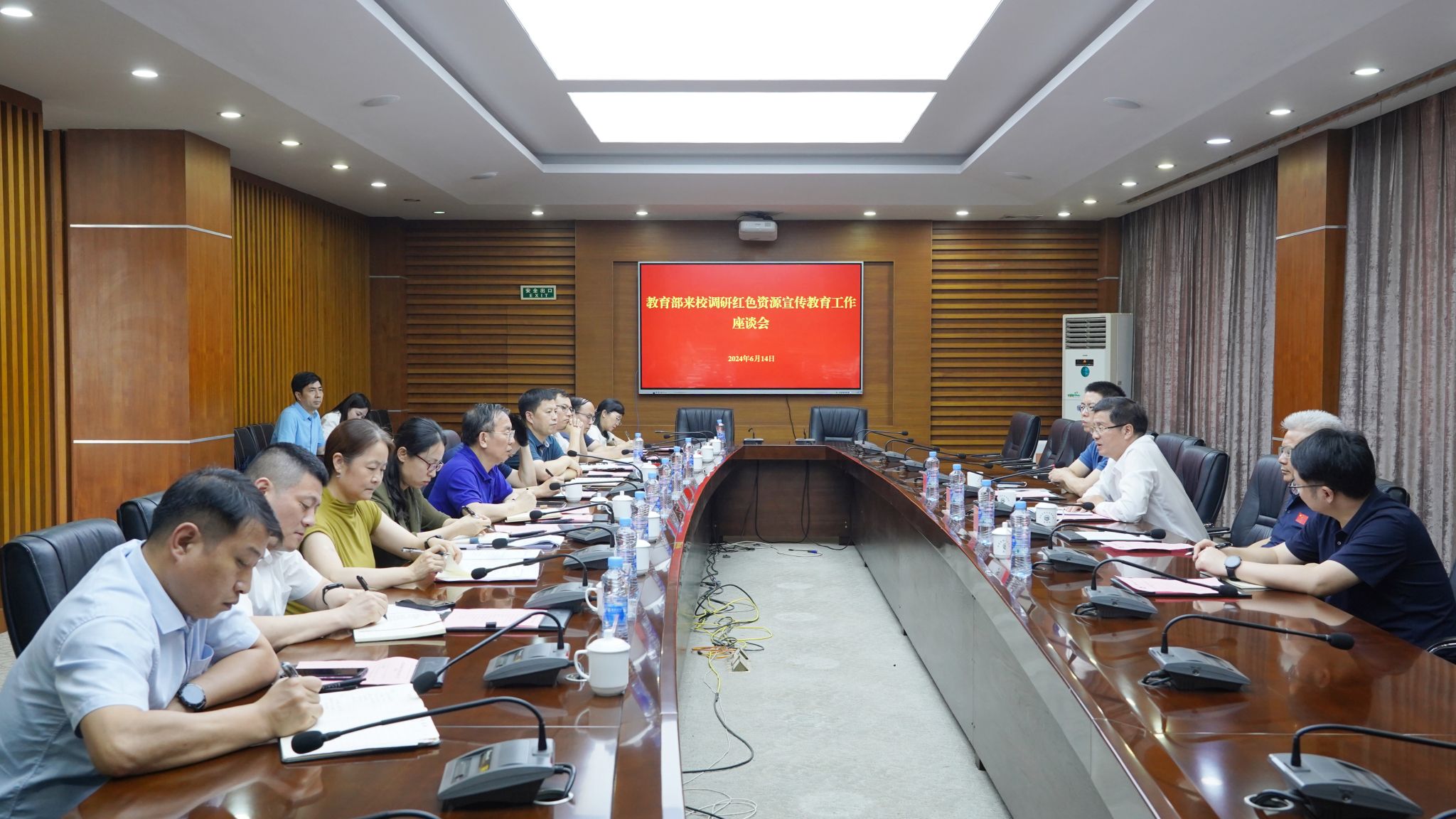 6月14日,教育部宣传教育中心主任黄兴胜、综合处(人事处)处长罗晓季,省委教育工委委员、省教育厅副厅长汪立夏一行来校调研红色资源宣传教育工作。校党委书记柳和生,校党委副书记、校长徐长节,校党委副书记罗文俊陪同调研。