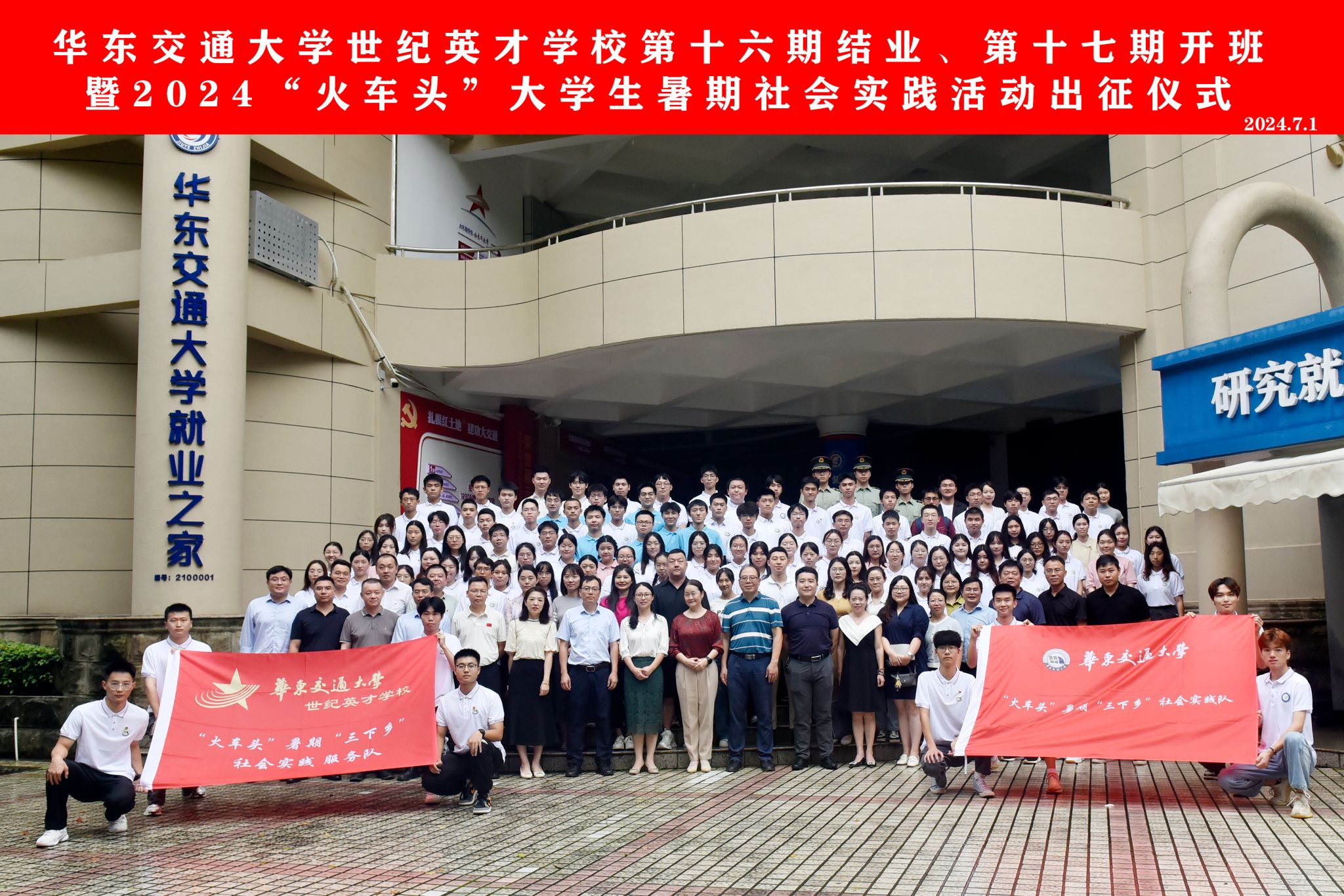 出征仪式上,罗文俊为“火车头”暑期社会实践队代表授旗。此次暑期社会实践共有23支队伍、200余名师生,分别前往新疆阿克苏地区、抚州东乡区、九江武宁县、赣州瑞金市等地区开展社会实践活动。