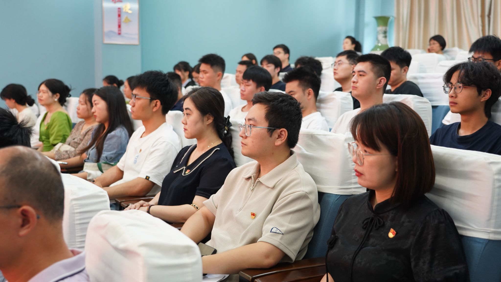 科研学报党支部全体党员,信工学院党委班子成员、党员科级干部、党支部书记聆听专题党课。(陈君 摄)
