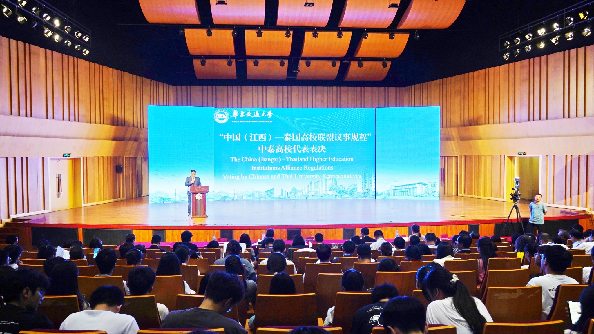 校党委委员、副校长肖乾主持大会并宣读了《中国(江西)—泰国高校联盟议事规程》,详细阐述了联盟的宗旨、工作任务、组织机构、成员权利与义务等内容。中泰双方高校代表全票表决通过了议事规程,标志着中国(江西)—泰国高校联盟正式成立。