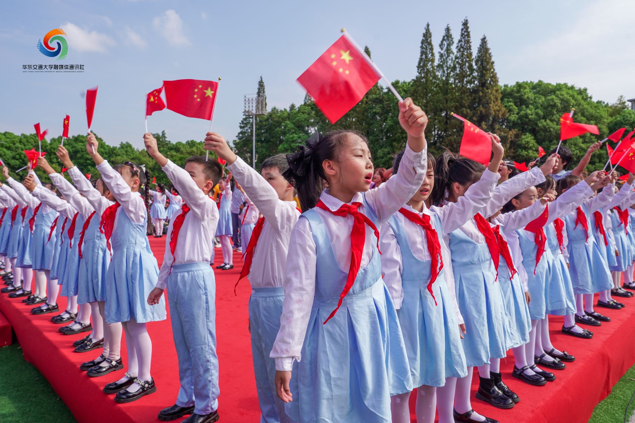 最后,典礼在《我爱你中国》的歌声中圆满落幕。附属学校的小朋友们用稚嫩的童声与刚迈入大学的新生齐声合唱这首爱国歌曲,五星红旗在歌声中飘扬传递,爱国之情在每个人心中激荡。这一刻,青春与祖国紧密相连,新生们将以实际行动向祖国献礼,将爱国之情化作前行的动力,向着更加辉煌的未来迈进。
