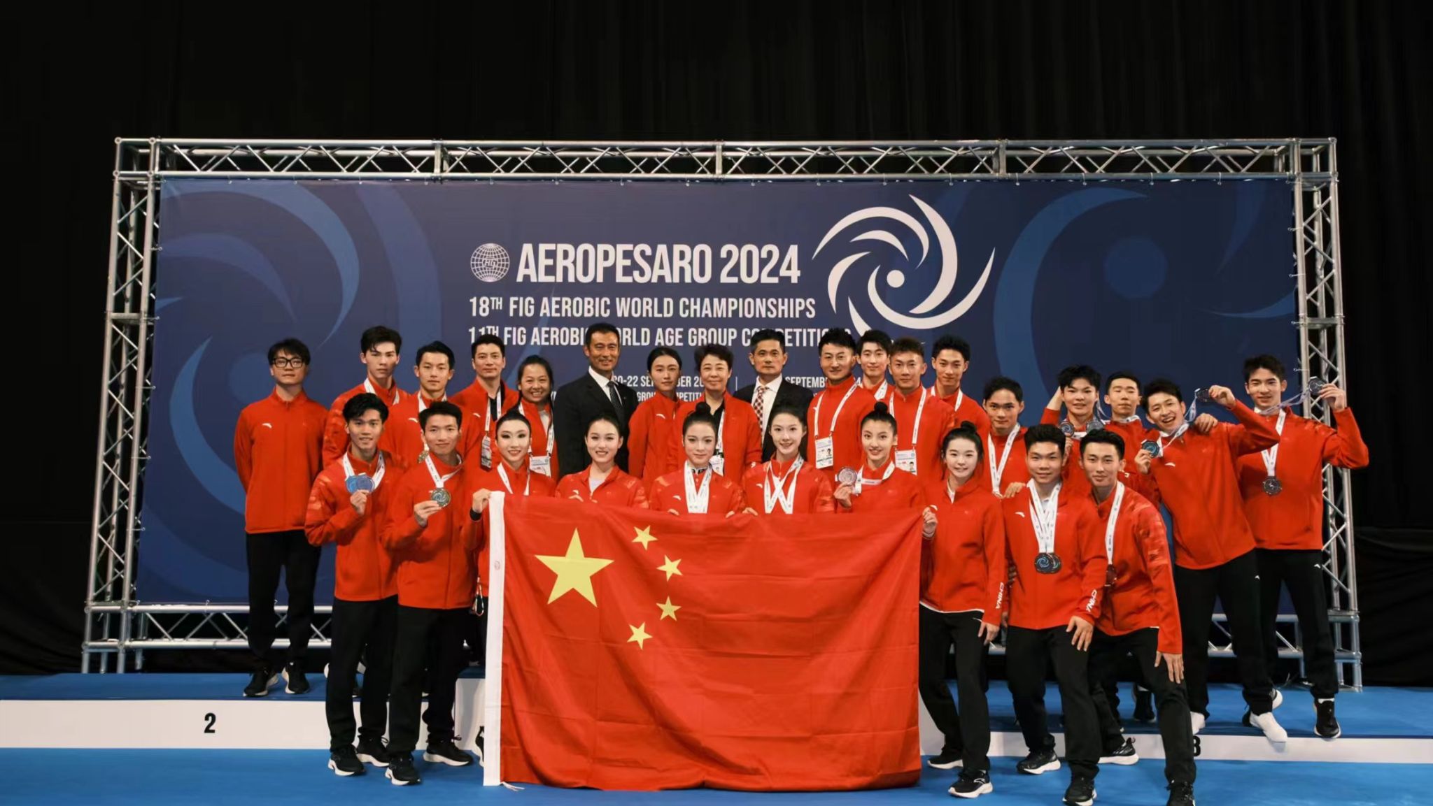 9月23日至29日,2024年第十八届健美操世锦赛在意大利佩萨罗举行。开元体健学院青年教师席岳峰作为国家队成员参赛,所在团队代表中国队参赛,获有氧踏板操亚军、团体第三,并获得2025年世界运动会参赛资格。