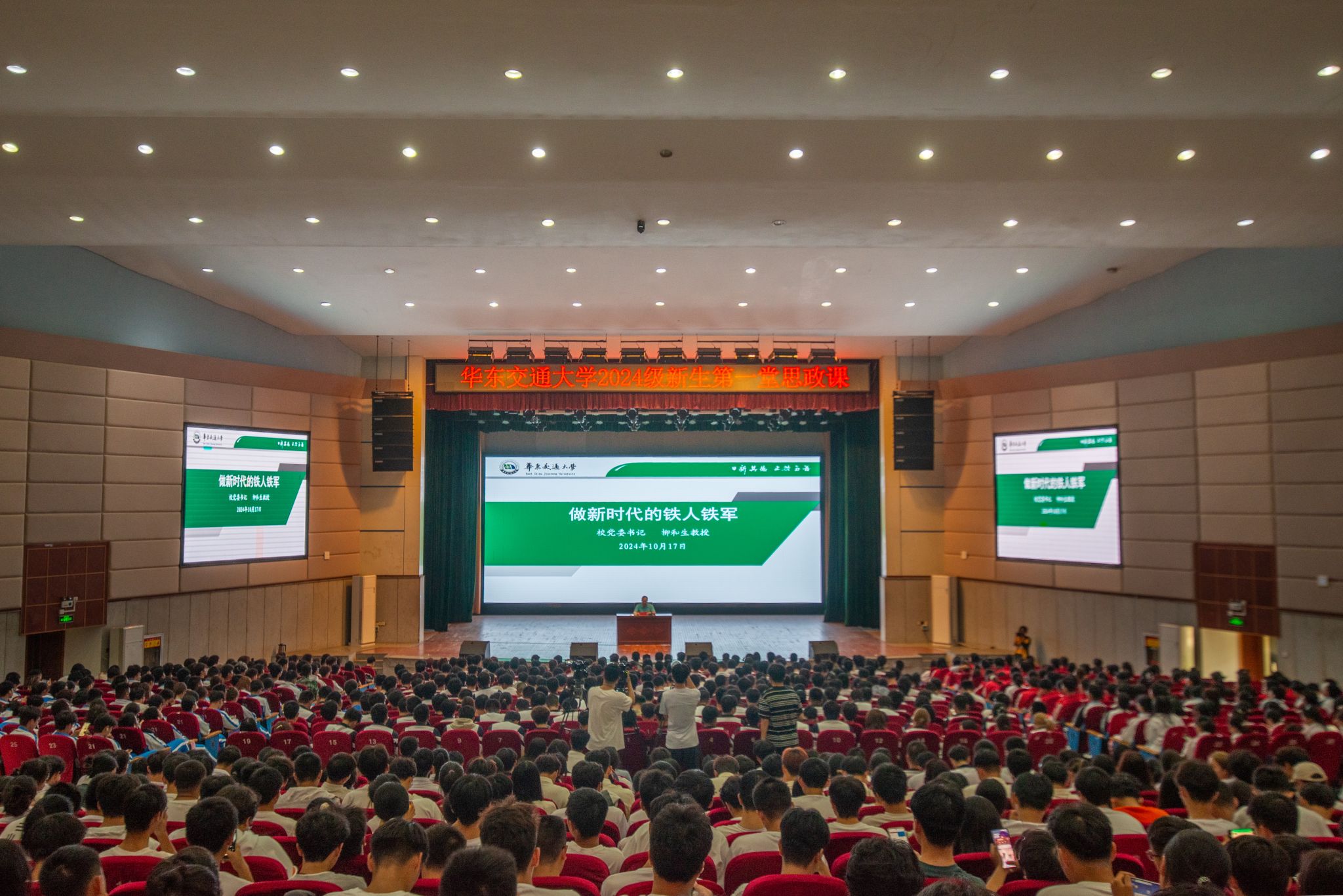 党办校办、学工部、团委主要负责同志,各学院党委副书记,2024级新生辅导员,2024级部分新生聆听了此堂思政课。(胡玉恒、李亚楠、杨嘉俊、彭敏行 摄)