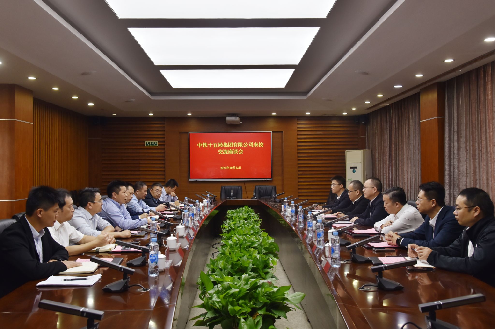10月22日下午,中铁十五局集团有限公司(以下简称“中铁十五局”)副总经理、华东区域总部总经理王小川一行5人来校交流座谈。校党委副书记、校长徐长节出席并讲话。校党委委员、副校长肖乾出席。