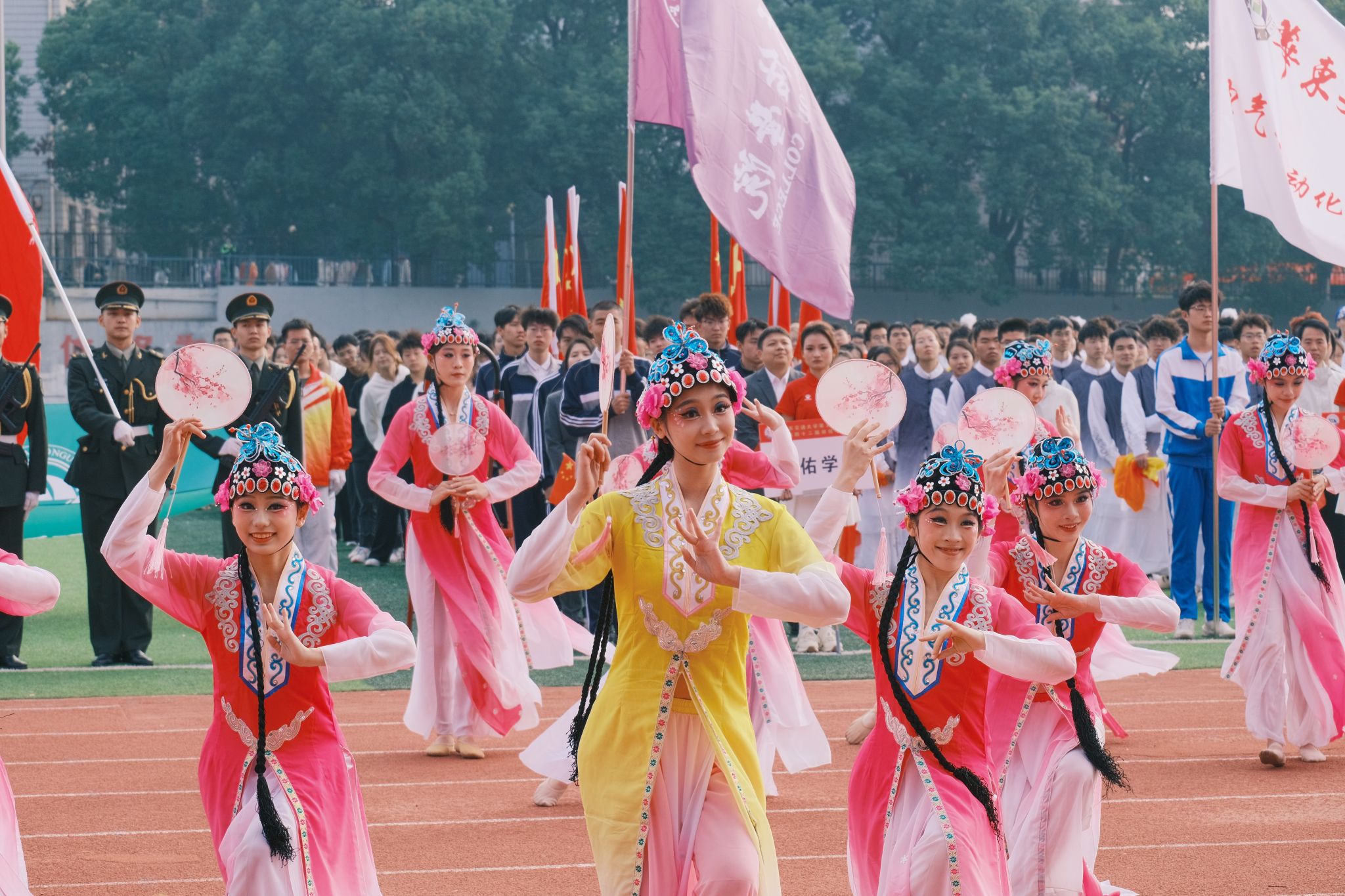 开幕式上,19个方阵队依次为全校师生带来了精彩的才艺展示。经管学院众人化身红衣侠客,手执太极火扇,抬手间套路优雅大方,如行云流水,似春风拂柳,飘逸潇洒,侠义之气尽显;千里江山图徐徐展开,人文青绿扇舞尽显水墨豪情,用春水做墨,以雀翎为笔,绘出激扬文字与绵亘山势;继教学院带来的非遗特色表演——梅庄花棍,让现场惊叹连连,一抹金黄,展示着他们昂扬的精神力,一舞金枪,宣示着对传统文化的弘扬;附属学校的学生们在跳绳间舞动,朝气蓬勃,展现出无限的活力与童真。