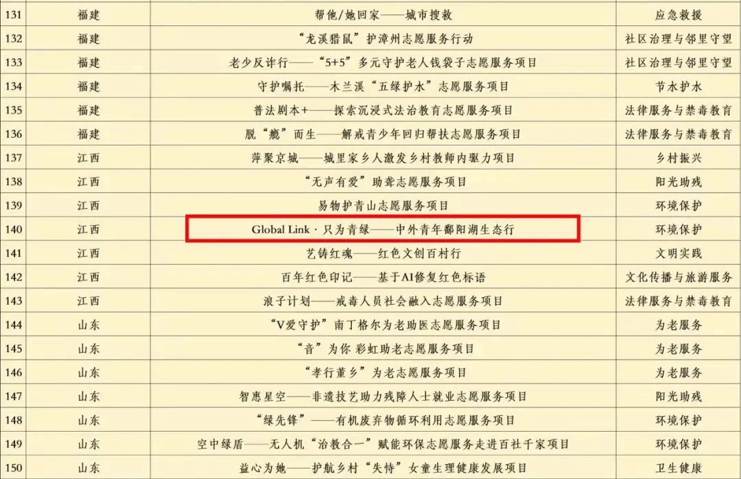 11月30日至12月1日,第七届中国青年志愿服务项目大赛全国赛终评在广东汕头举行。开元国际学院选送的“Global Link 只为青绿——中外青年鄱阳湖生态行”项目斩获银奖,实现了学校在该赛事中国家级奖项零的突破。此前,开元在省赛环节以1金1银2铜创历史最好成绩,获奖数并列全省第一。