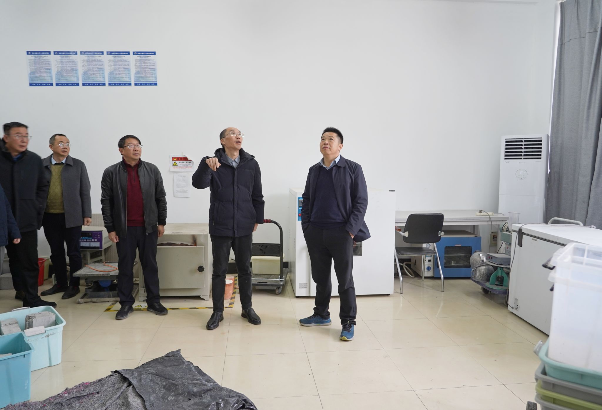 在土建学院实验室,徐长节详细检查了仪器设备及消防安全等情况,强调假期要高度重视实验室管理,落实责任,保障实验室安全。