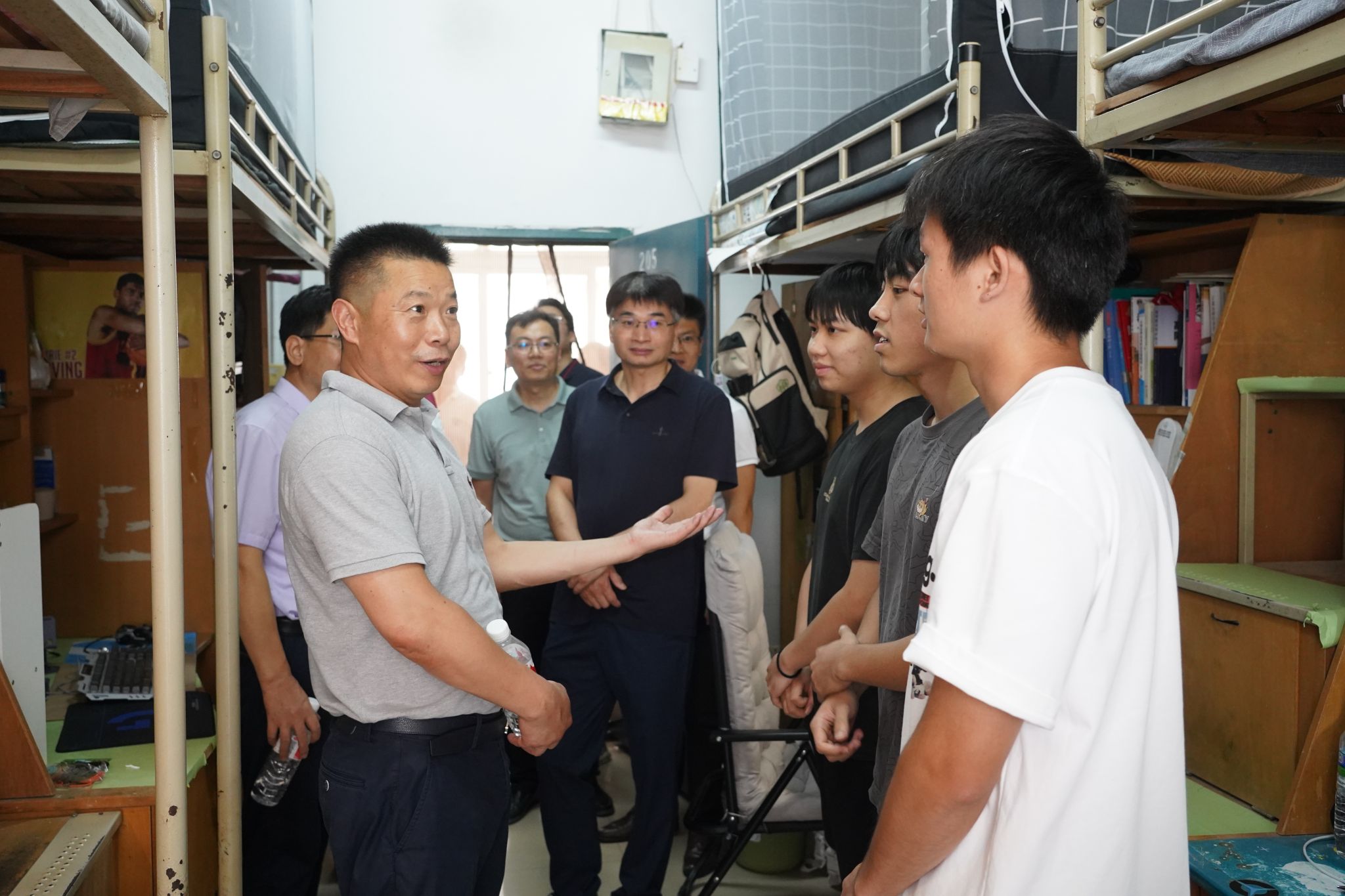 在孔目湖周边和学生宿舍49号楼施工现场,徐长节指出,要始终绷紧安全这根弦不放松,持续筑牢安全稳定防线。要强化全过程监督管理,确保施工质量和人员安全。要充分利用假期施工黄金期,优化工期管理,提速项目建设,进一步提升办学条件。