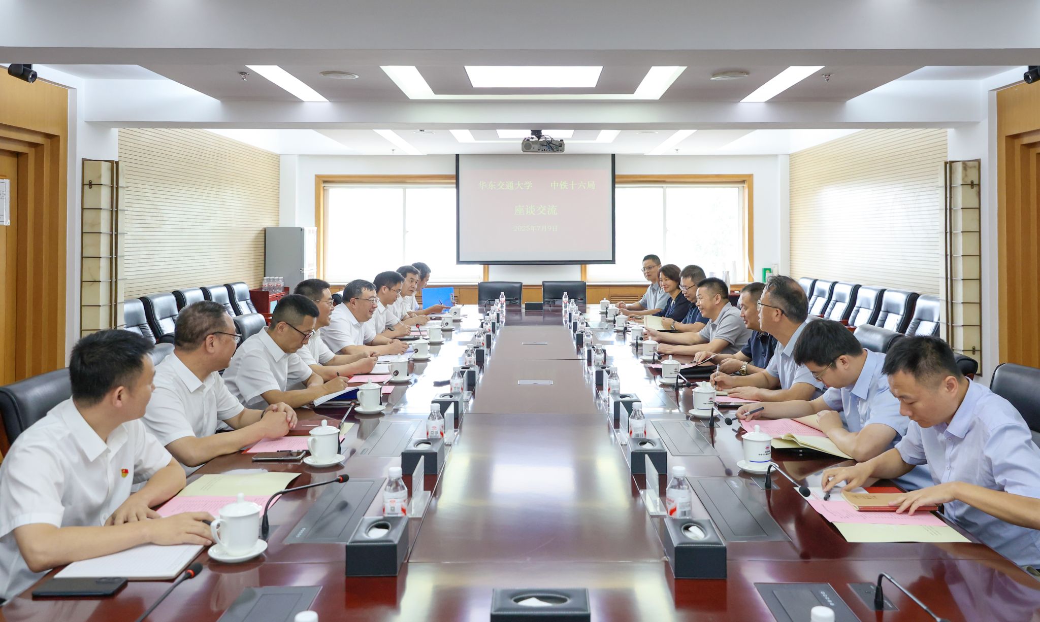 在中铁十六局,徐长节与集团公司总经理、党委副书记谭发刚座谈交流,集团公司副总经理、总工程师杨晋文参加座谈。谭发刚表示,中铁十六局与华东交大多年来积淀了深厚的合作基础,未来希望加深在人才培养引进、科研课题联合攻关、创新产业技术研发转化、校区建设等方面的合作,促进共同发展。
