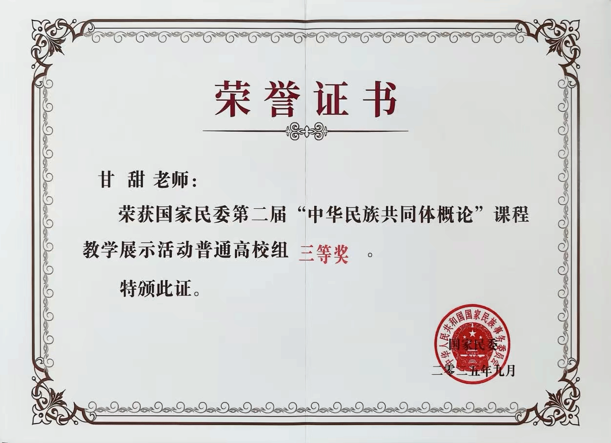 9月17日至19日,由国家民委举办的第二届“中华民族共同体概论”课程教学现场展示活动在中南民族大学举行。开元马克思主义学院教师甘甜参赛,并获得普通高校组三等奖。