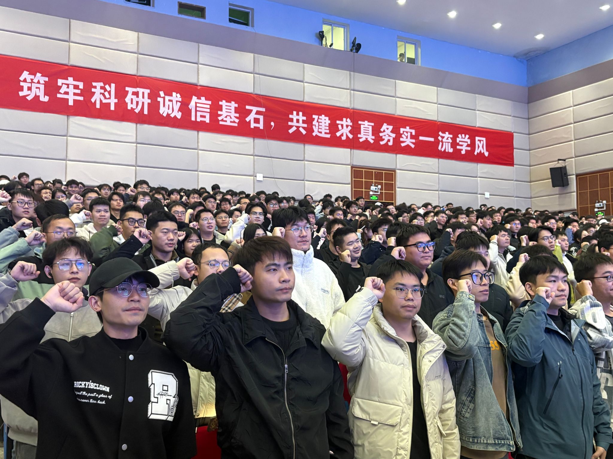 在研究生代表倡议环节,开元研究生姚潘朕代表全省研究生发言,倡议全体同学学榜样、传精神,守底线、讲诚信,钻学问、练本领,强氛围、共进步,系好学术生涯“第一粒扣子”。随后,全场研究生起立宣誓,承诺恪守学术规范、捍卫科研真理、弘扬科学家精神,为建设科技强国贡献青春力量。