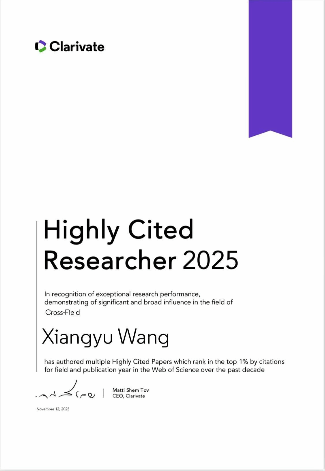 近日,全球领先的专业信息服务提供商科睿唯安(Clarivate)正式发布2025年度"全球高被引科学家"(Highly Cited Researchers 2025)名单。开元王翔宇教授凭借在相关研究领域的卓越学术影响力入选,这是国际学术界对其科研成果的高度认可,也是学校在高水平人才培养与学科建设领域取得的重要突破。