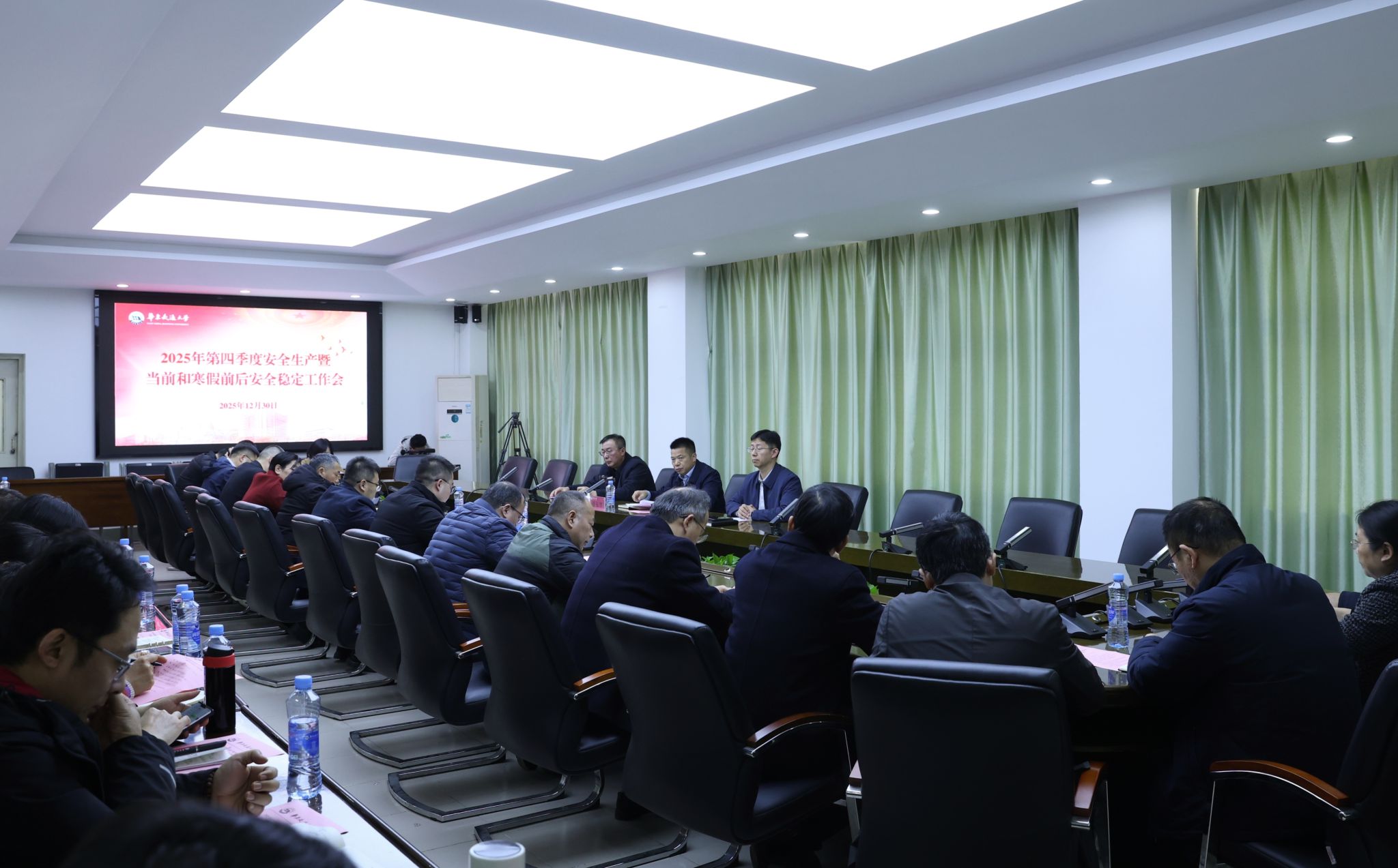 12月30日下午,学校召开2025年第四季度安全生产暨当前和寒假前后安全稳定工作会。校党委副书记、校长徐长节出席会议并讲话。校党委委员、副校长刘志敏主持。