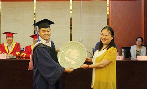 典礼上,MBA毕业生代表陈央等相继发言,表达对母校及导师的感激之情。陈央代表全体毕业生向学院赠送纪念品。