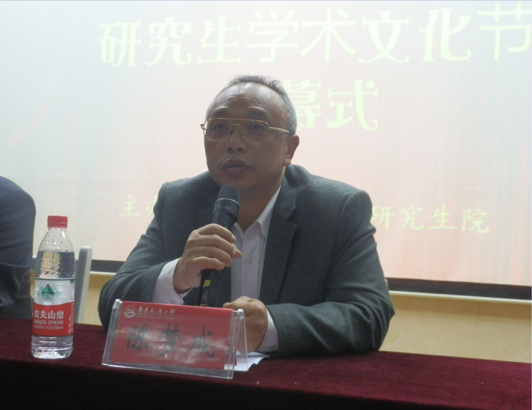最后,陈梦成做重要讲话,他认为此次研究生学术文化节是对研究生培养目标的最好体现。同时提出两点希望:一是希望研究生能够借此平台学会如何进行科研以及提高人文素养,二是希望学术文化节内容丰富多样,扩大与外界交流;同时努力将“冠山讲坛”打造成全省乃至全国大学内知名品牌;希望研究生们通过此次活动,将自己的学术梦融入交大梦,让青春梦托起中国梦。