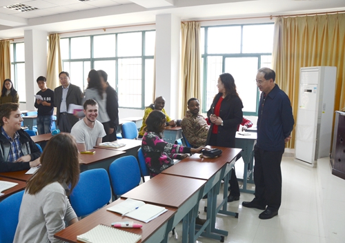 “你好,在中国生活习惯吗?”“中国菜还吃得惯吗,会不会用筷子?”……座谈结束后,万明看望了开元留学生,关切地询问了留学生的生活。万明希望留学生在中国学习,不仅要学习课本知识,还要学习中国文化,丰富自己。