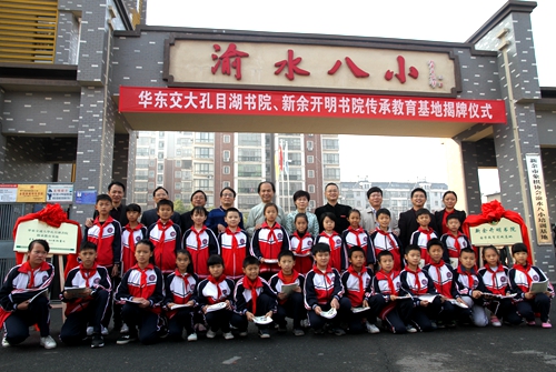 11月3日,新余渝水八小举行孔目湖书院国学示范教育基地揭牌仪式。新余市政府副市长、民盟新余市主委陈文华,孔目湖书院院长石初军、孔目湖书院国学顾问张卫东先生等出席揭牌仪式。