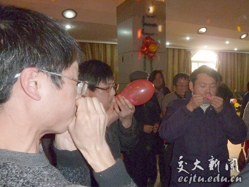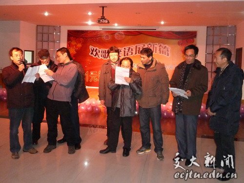 联欢会上,教师个人演唱《天之大》、《套马杆》等获得阵阵喝彩,教研室、办公室合唱的《国家》、《明天会更好》等曲目变成了全院教师的大合唱。游戏珠联璧合、夺宝奇缘等展示了教工可爱的一面,场上场下一片欢乐祥和。