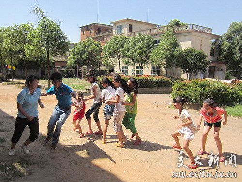 6月30日,土建、信息学院社会实践活动服务团爱心捐赠及义务支教开班仪式在樵舍中学举行。服务团向当地留守儿童捐赠了一千余元的书籍、文具等学习用品,并分为多个小组为孩子们进行课程教授和学业辅导。 义务支教素质拓展 此外,服务团支教小组的同学还与当地留守儿童开展了丢手绢、老鹰抓小鸡等素拓游戏。服务团维修小组则在樵舍镇中心为当地群众免费维修电脑、手机等物品。