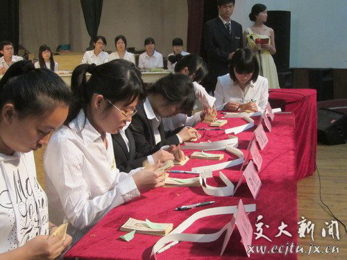 本次比赛由教务处主办,经管学院承办。近2000名学生通过网络方式报名参赛,历经注册答题初赛,6支队伍36人晋级决赛。决赛分为“数来数去—点钞”、“你争我答—答题”、“你比我猜—猜会计术语”、“巧会妙计—记账凭证制作”四个环节进行,分别考察参赛选手的会计实务操作、理论知识、团队配合及做账动手能力。