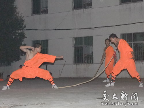 情款款的情歌对唱,技惊全场的武术表演,激情动感的热舞,神秘莫测的少林护身术……10月19日晚,参加省运会开幕式表演的艺术学院学生与河南少林鹅坡武院学生在驻地举行了篝火晚会。艺术学院团委书记尚军、鹅坡武院院长梁少宗等出席并观看了演出。