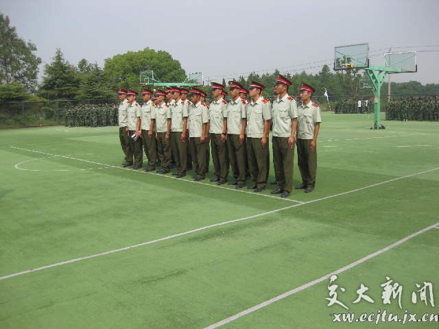 操场上,新生正以饱满的精神、严整的军容、整齐的步伐、响亮的口号,进行着紧张的训练。同学们个个精神抖擞、英姿飒爽,在教官的的严格指挥下,动作有板有眼。军训内容有立正稍息、跨立;停止间的动作,即坐下起立、蹲下起立,四面反转,以及齐步、正步、跑步三大步伐进行训练。这些基本的体能训练不仅可以磨练新生们的意志、培养他们的吃苦精神,还促使他们养成严于律己的良好习惯。