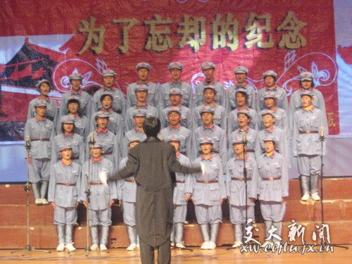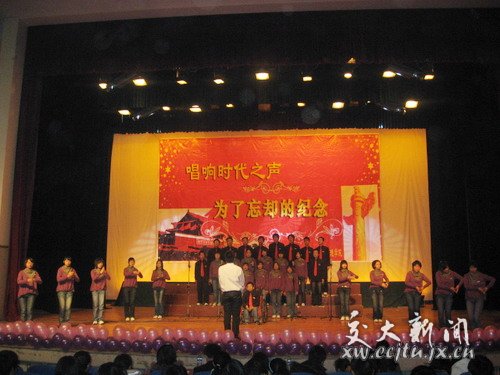 12月8日晚,由经管学院团总支主办的“一二•九”学生运动大合唱在南区俱乐部举行。