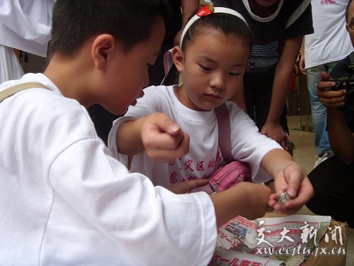 同学们走街窜巷进行义卖,为灾区儿童尽自己的一份力量