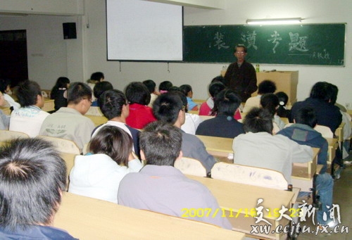 同一天晚上,理工学院(黄家湖)土建分院吴兴国副教授受装饰装潢与测量协会的邀请,在学院三号教学楼阶三教室为同学们作了“装潢知识”专题讲座。