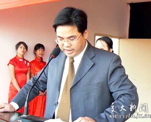 石小红书记为获得团体总分第三名的文法分院颁奖。