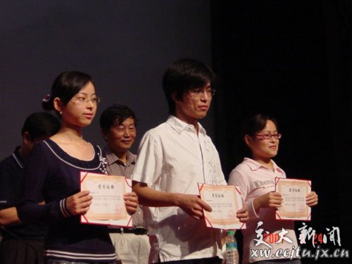 随后,丁阳喜宣读了2006-2007年表彰决定,对那些为推进大学生综合素质教育和学院改革与发展做出积极贡献的先进集体和个人进行表彰。詹天佑班级交通运输05-2班、江西省优秀学生干部万巍、优秀运动员、男子篮球队等先进集体和个人先后上台领奖。丁阳喜希望受表彰的集体和个人再接再厉,开拓进取,在学院建设和各项工作中不断取得新成绩。同时,他还要求全院各班团支部和广大团员青年以他们为榜样,增强时代责任感和使命感。