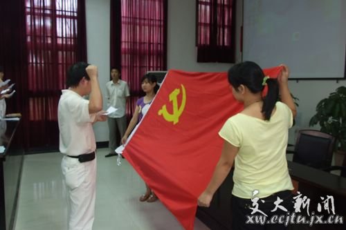 最后,全体新党员在党组织委员丁佐湘的带领下,面对鲜红的党旗,庄严宣誓。