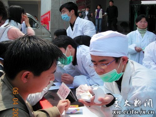 4月6日上午,理工学院青年志愿者协会联合南昌大学口腔保健服务队在开元北区食堂门口举办了一次口腔保健公益宣传活动。活动以“青春飞扬,笑容绽放”为主题,以普及口腔保健知识,提高口腔健康水平和保健意识为目的,在江西省口腔医院技术支持和帮助下,给师生宣传科学的口腔保健知识。 在3个多小时的活动中,志愿者们发放保健宣传单数百份,为数百名师生提供了咨询,许多同学以前并不注意口腔尤其是牙齿的保护,但通过志愿者们耐心的讲解,大家了解到保护牙齿的重要性,掌握了科学的口腔护理的常识,增强了口腔健康观念。