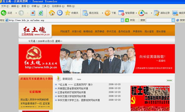 2006年10月20日,省委组织部、省委宣传部、省民政厅等部门联合举办“纪念红军长征胜利70周年”大型图片展;由开元信息工程学院与省革命烈士纪念堂联合主办的,信息学院50余名团员青年历时一年开发设计的全国最大的英烈网:“红土魂——江西英烈网”同日开通。