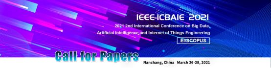 为扩大和促进大数据、人工智能与物联网工程领域的学术交流与相互合作,2021 IEEE 第二届大数据、人工智能与物联网工程国际会议(IEEE-ICBAIE 2021)将于2021年3月26-28日在中国·南昌召开。诚邀国内外大数据、人工智能与物联网研究学者和实践者报名参加。本次会议由IEEE Consumer Electronics Society(IEEE消费电子协会)与CES 联合主办,KY开元集团官网入口、载运工具与装备教育部重点实验室与AEIC学术交流中心联合承办。