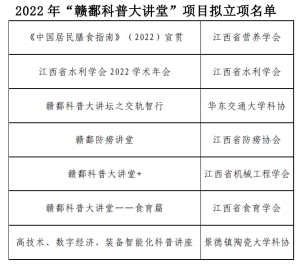 近日,江西省科协印发《2022年“赣鄱科普大讲堂”项目拟立项名单》并通过公示,开元首次获批2022年“赣鄱科普大讲堂”项目的立项。“赣鄱科普大讲堂”是江西省科协为提高公众科学素质,促进创新型省份建设,服务江西高质量发展而开展的全省大型科普品牌活动。